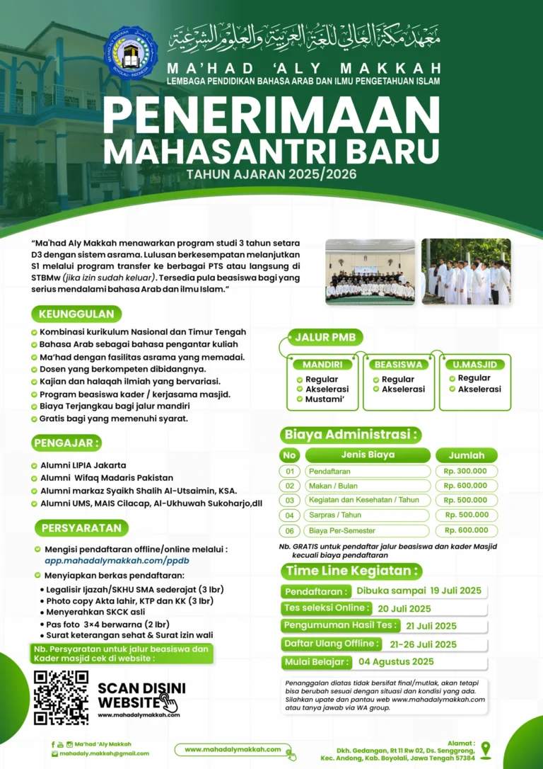 Penerimaan Mahasantri Baru Ma’had ‘Aly Makkah 2025/2026